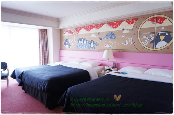 由於幾種房型的價格一樣,所以雖然我們只有兩大一小入住,但還是挑了空間比較大的房型~兩大兩小床。