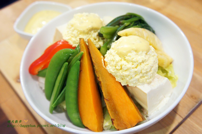 擺盤一整個賞心悅目,配色亮眼,讓人眼睛為之一亮。用心的食材選擇,山藥、甜椒、鳳梨、秋葵、豆腐等,感覺吃起來很健康。