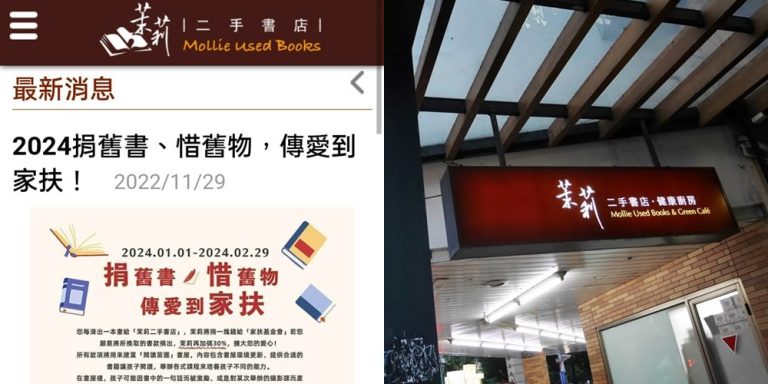 「捐舊書,惜舊物,傳愛到家扶」為茉莉二手書店與家扶基金會共同舉辦的活動,2024年公益活動收購時間為2024/1/1至2024/2/29。