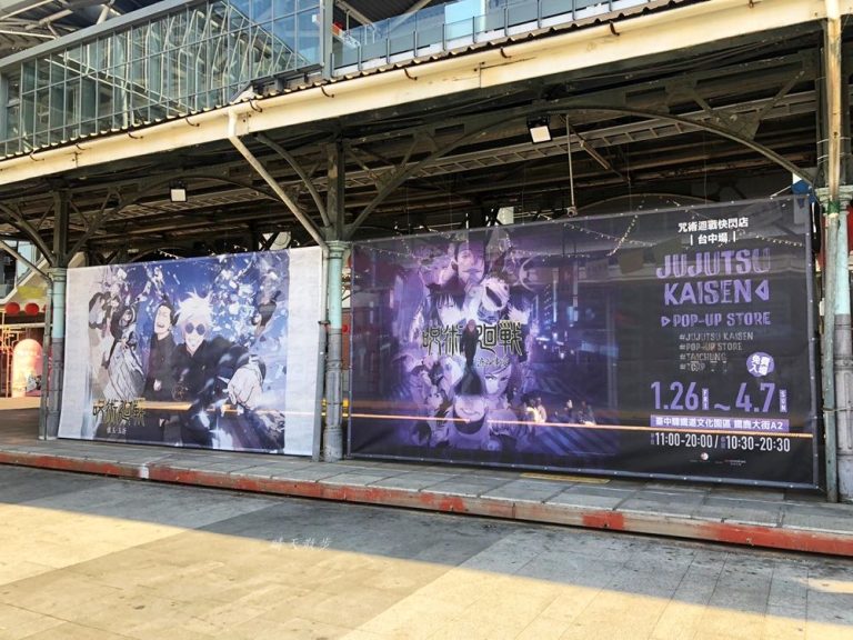 台中驛鐵道文化園區場地寬闊,滿適合舉辦動漫主題快閃店活動,總會設置不少經典場景讓粉絲拍照留念,這回咒術迴戰台中快閃店當然也不例外。