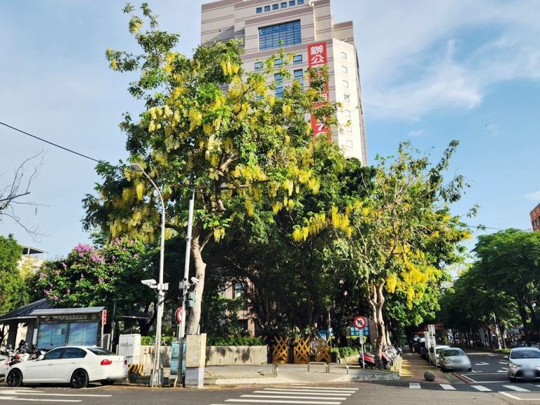 每年五、六月時,總能看到一串串美麗的黃色阿勃勒隨風搖曳,是街景的一大亮點。這種季節美景值得紀錄一下,忠明南路上的土庫公園也有喔!