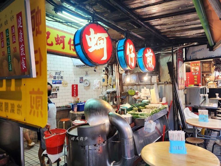 洪記蚵仔煎~廟東夜市老牌蚵仔煎專賣店 料多味美搭配空心菜最對味