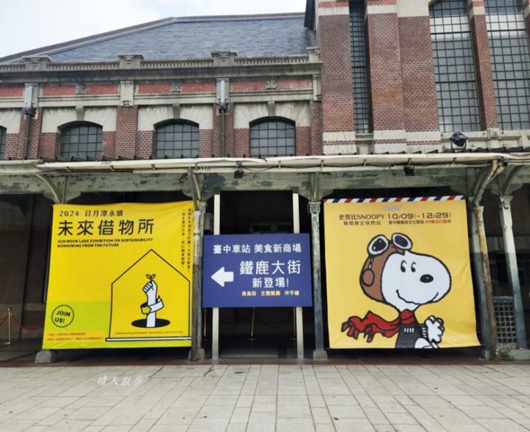 舊台中車站不定期推出各種展覽或快閃店,近期的2024日月潭永續未來借物所是個小型免費展覽,推廣永續旅遊與環保,還有真人版大富翁可以體驗喔!