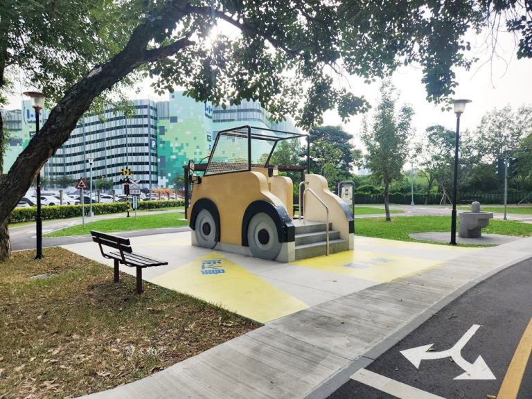 寬闊的公園以交通為主題,裡面打造成一個孩子可以學習遵守交通規則的園地,是適合二到八歲幼童的公園。