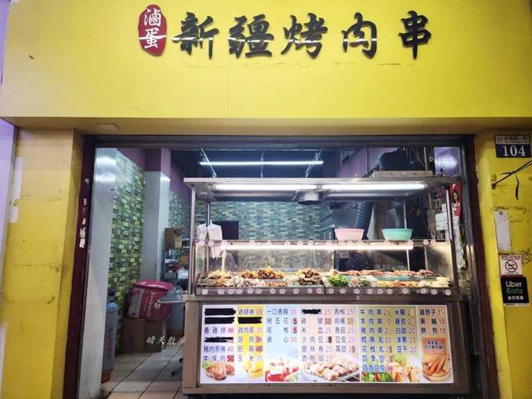 店名挺特別的滷蛋新疆烤肉串,是中華路夜市的串燒外帶店,串燒食材選擇非常豐富,價格還滿平價的,滿適合逛夜市買幾串嚐嚐。