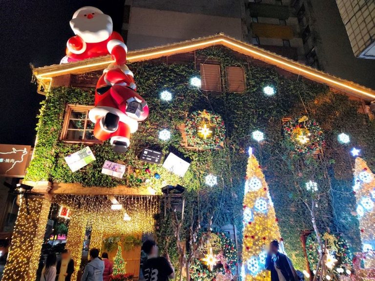 位於民權路近建國路口的瓦庫燒肉,每到聖誕佳節,就變身為閃亮亮的耶誕屋,吸引路人目光。