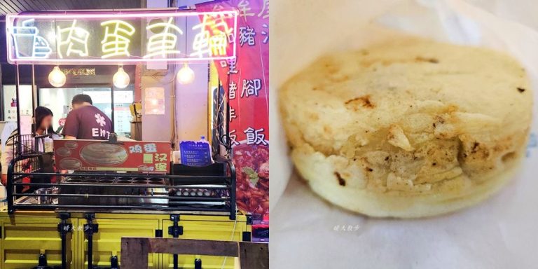 肉蛋車輪專賣類似車輪餅造型的肉蛋堡,是中華路夜市的平價小吃,基本款的香蔥蛋堡、羅勒蛋堡只要40元,也有豬肉、雞肉、干貝的各種口味蛋堡。