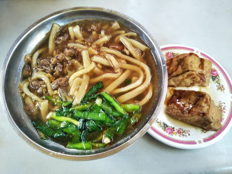 大麵羹裡加了油蔥酥、蘿蔔乾、韮菜,口味不算清淡的湯頭,搭配滷味,是讓人懷念的味道。