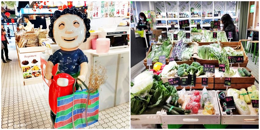 台中的第六市場很特別,設在百貨商場金典綠園道裡,不怕刮風下雨,還能吹冷氣買菜、吃美食,很方便也很特別。這天逛的攤子是日日青蔬,可以買菜,還可以在裡面吃滷味呢!