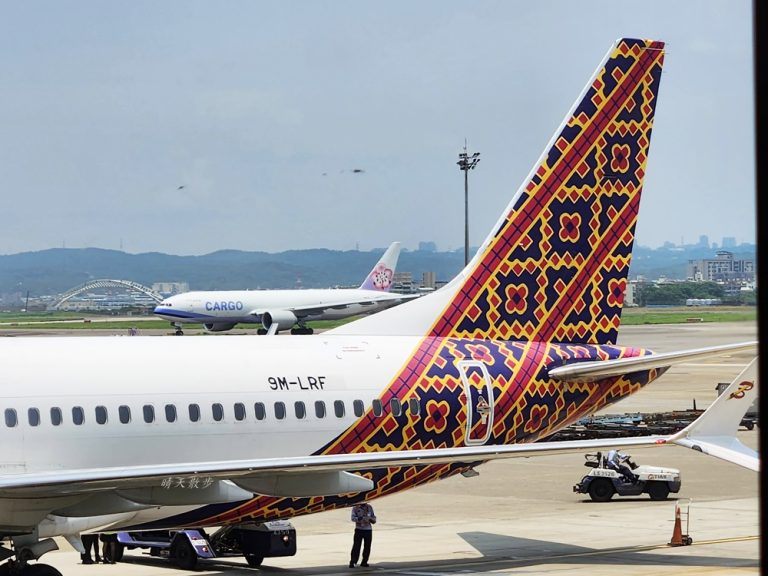 候機時看到去程的馬印航空飛機,外觀彩繪挺有特色的。