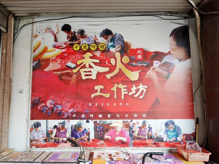 第一次來北港朝天宮時,看到這個「千歲阿嬤香火工作坊」,就覺得很有親切感。裡面的阿嬤志工分工合作,縫製紅布香火袋,讓前來朝天宮參拜的信眾帶回家保平安,聽說一年要做上好幾萬個呢!