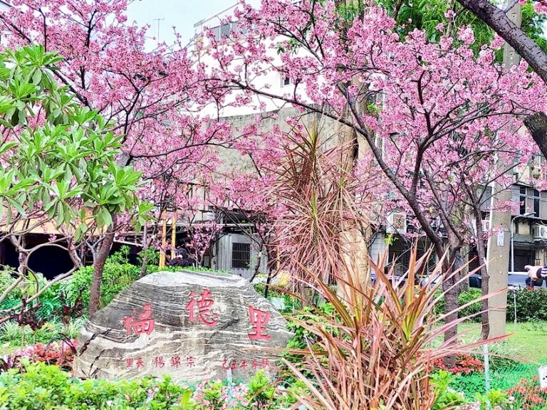 小小的福德里公園裡,大概種了十幾株櫻花,每年大約過年期間,就會出現這樣的迷人風情。