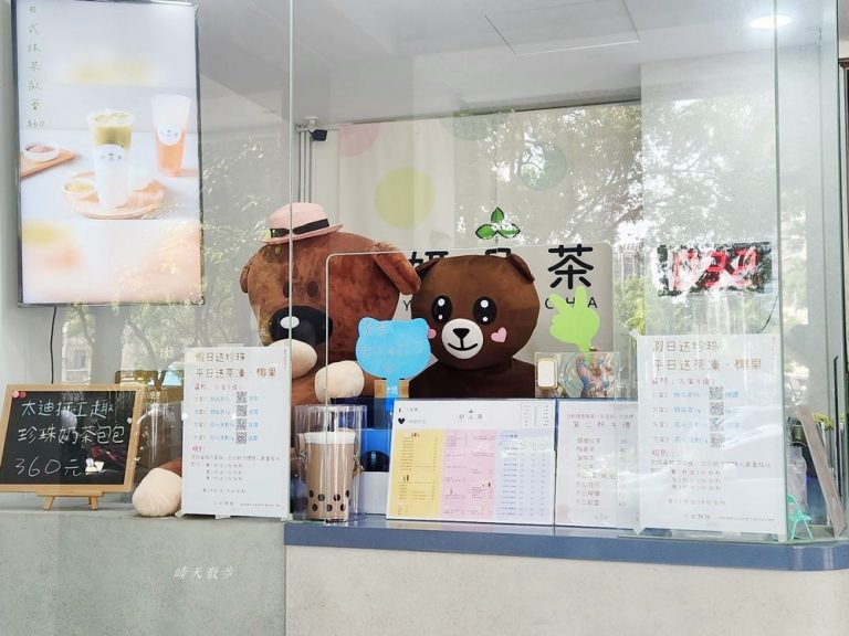 位於審計新村入口處的妍品茶台中審計店,常可見到熱情的熊熊店員跟路人揮手打招呼,實在太可愛了。妍品茶還設有內用區,也有販售一些可愛的生活小物,走逛審計新村時不要錯過這家飲料店。