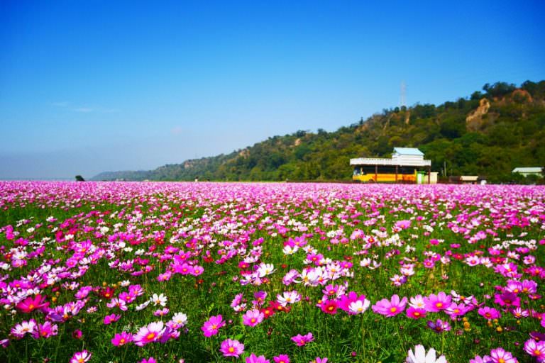 台中景點|忘憂谷花海~波斯菊花海好迷人 傳說中的外埔忘憂巴士