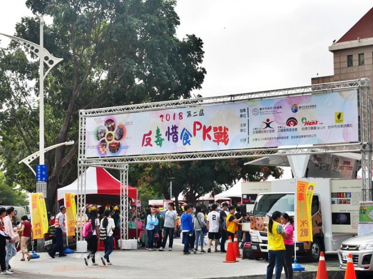 2018年第二屆「反毒惜食PK戰園遊會」,在台中豐樂雕塑公園樂鬧登場,以”反毒”與”惜食”為主題,有許多團體、店家、公司行號贊助園遊會攤位,不管想要吃美食、買菜,還是闖關、摸彩、玩遊戲,這裡都找得到。