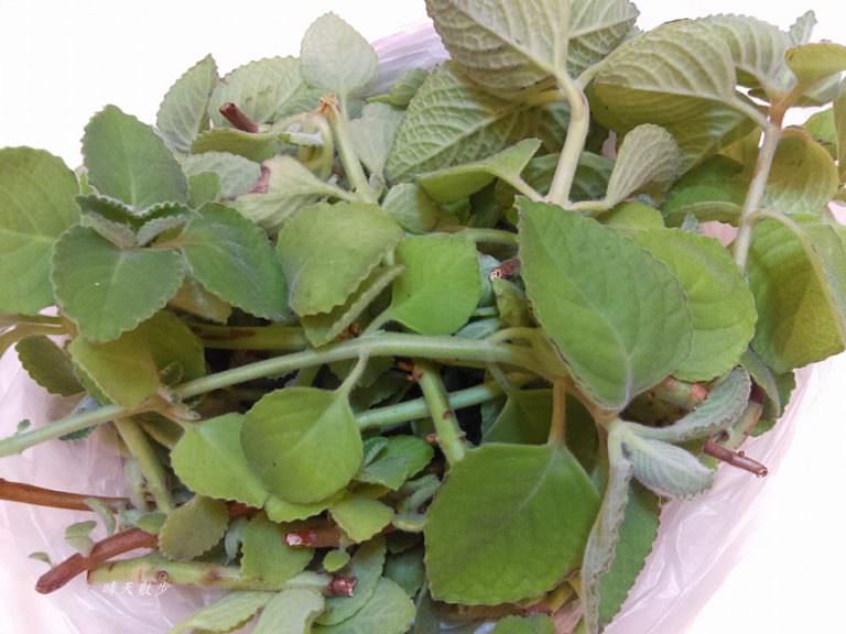 將左手香葉片洗淨,加水打汁過濾後,放冰庫結成冰塊,等著打皂。