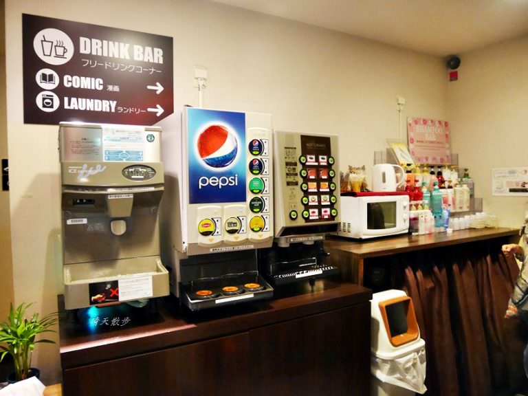 大廳旁有二十四小時的免費飲料吧,超級貼心,早知道就不先在對面超市買飲料啦!(查房價)