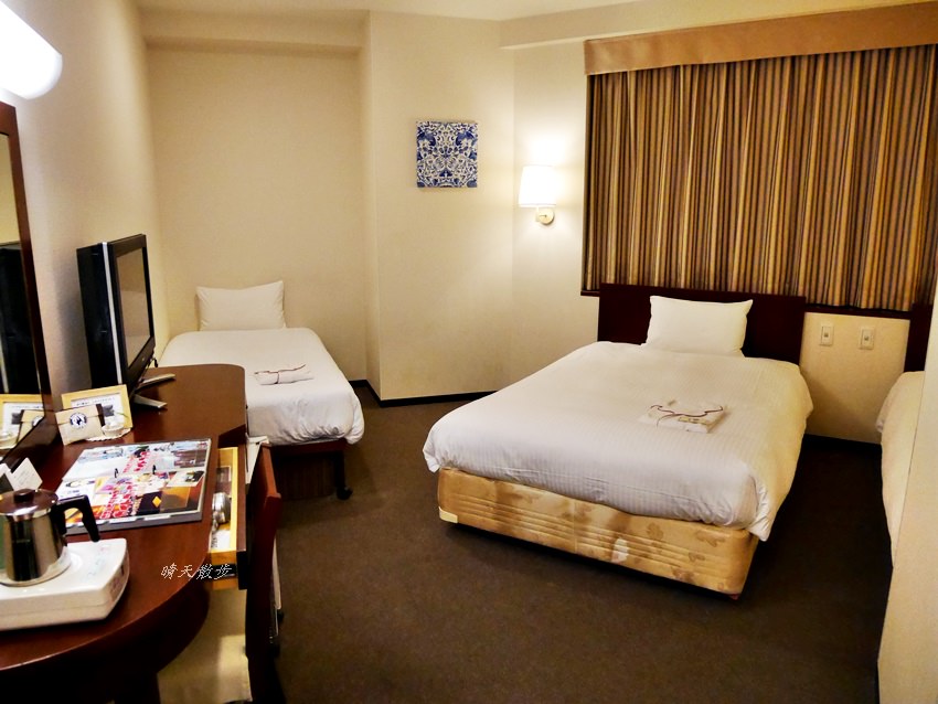 ㄟ,三人房裡的煮水器竟是這種小型煮水器,跟東橫INN單人房的一樣,煮一次水只能泡一碗泡麵。