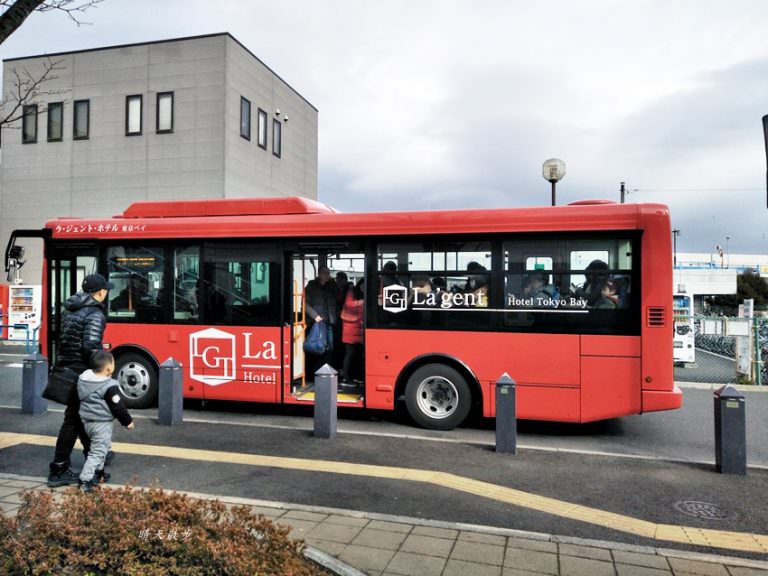 東京灣拉根特飯店的接駁車是紅色的外觀,還滿顯眼的,不過比起其他飯店的接駁車稍微小了些。