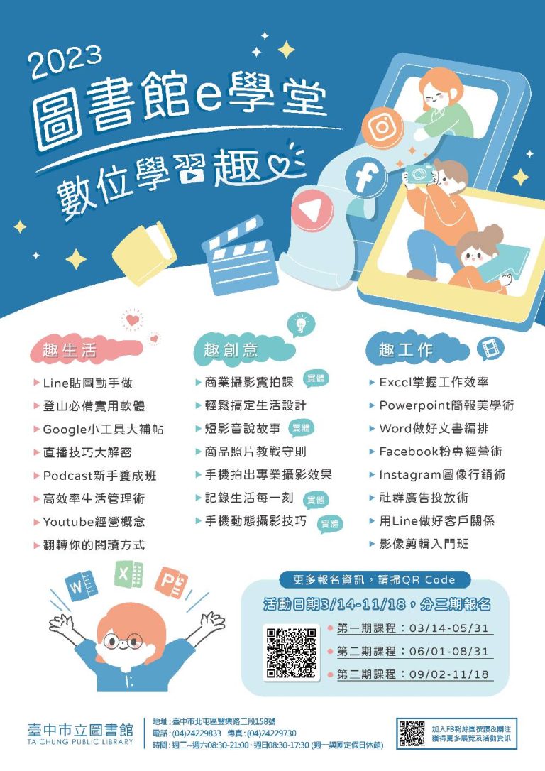 台中免費課程~台中圖書館66堂數位學習課程開放報名了!名額有限 通通免費!(2023圖書館e學堂-數位學習趣)