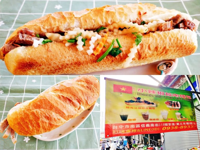 第三市場最火紅的排隊美食,當推台中文創園區旁的小辣椒越南麵包,酥脆的法國麵包包覆豐富的餡料,一大條麵包可以吃得很飽足,但沒時間久候真的不要排,會排到天荒地老XD建議有空再嚐鮮吧!
