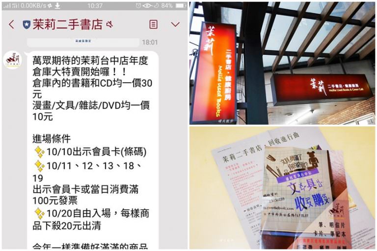 台中活動|2019茉莉二手書店台中店「倉庫特賣會」~倉庫漫畫、文具、雜誌只要10元 書籍、CD均一價30元 七天限時活動