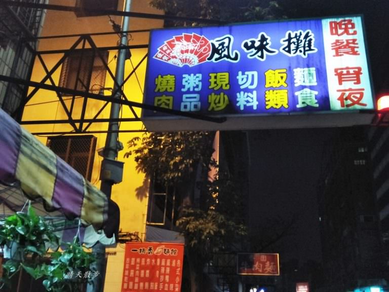 「風味攤」白天外觀不顯眼,就是家小館子,但夜色中的風味攤就很明顯了,想吃宵夜來這就對了。