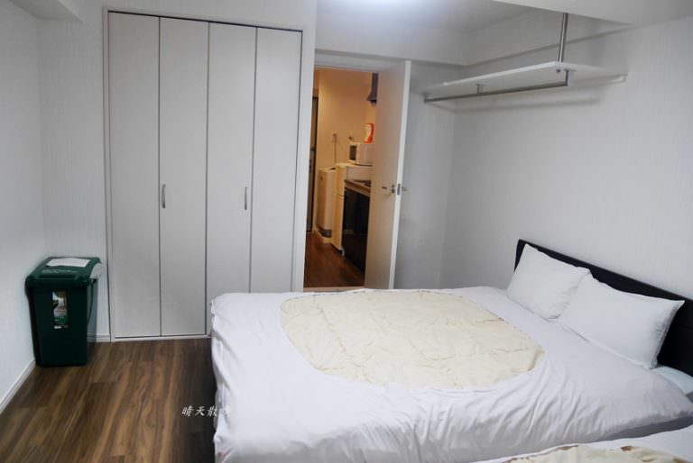 跟我們住過多次的公寓式飯店一樣,房門打開是個長廊,一旁是小廚房和洗衣機,以及乾濕分離的衛浴。