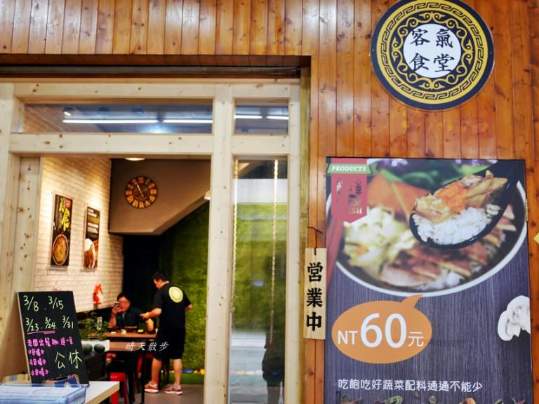客氣食堂的老闆兼主廚曾任職月子中心主廚多年,將這些年來藥膳餐、養生餐、月子餐的料理經驗和知識,帶入客氣食堂的菜餚中,在同中求異,讓家常菜色別具風味,例如坊間比較少見的當歸鴨料理,銅板價就能大飽口福。