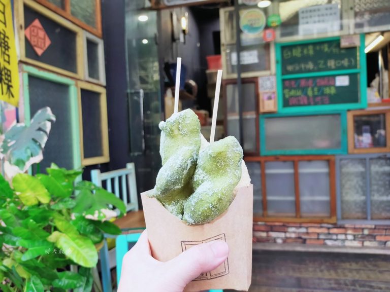 我們點了抹茶口味和花生口味的白糖粿,現炸熱呼呼,吃起來口感有點像麻糬、炸湯圓。