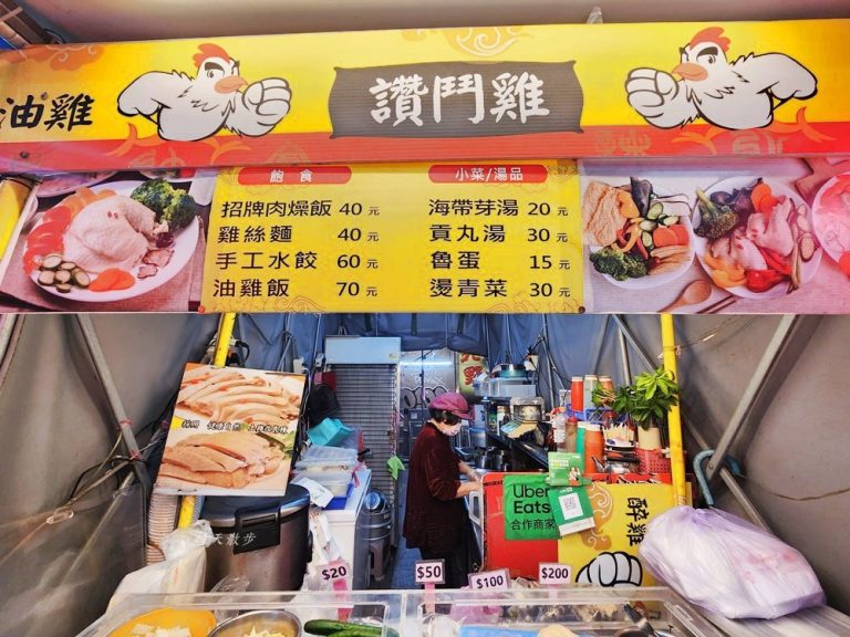 小吃林立的一中夜市有好幾家賣油雞、鹽水雞的攤子。這家讚鬥雞一中店鄰近水利大樓,不只賣油雞、醉雞,還有多種可以吃飽的餐點,例如雞絲麵、水餃等,想吃飽或吃巧都滿方便的。