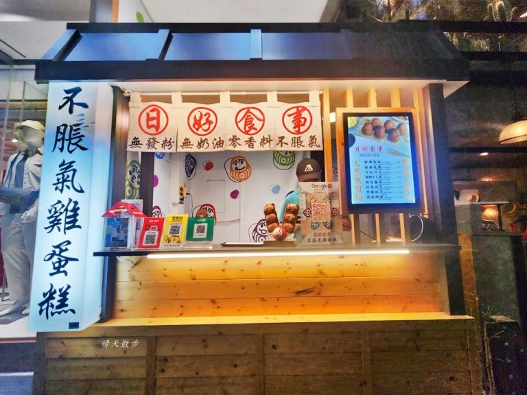 一中夜市有好幾家雞蛋糕小店,這個小攤叫日好食事不脹氣雞蛋糕,雞蛋糕是可愛的不倒翁造型,主打無發粉、無奶油、零香料、不脹氣,口味選擇不少,例如起司、花生、巧克力等等。