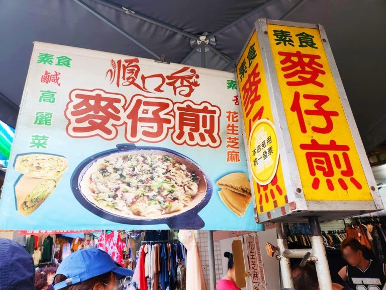 台中文創園區、第三市場這一帶有不少銅板美食,常常大排長龍的宏記順口香麥仔煎專賣素食麥仔煎,鹹甜口味都有,假日才有賣紅豆口味麥仔煎喔!