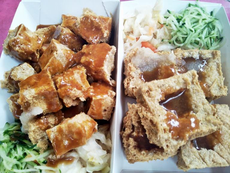 炸得外酥內嫩是美味臭豆腐的必要條件,外加香氣十足,搭配高麗菜泡菜和小黃瓜絲泡菜,真是台灣傳統美味。