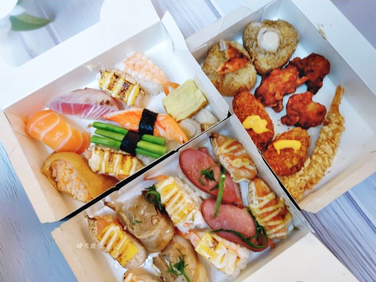 西區便當|点爭鮮迴轉壽司也有便當喔!壽司餐盒120元,菜色選擇挺豐富,也有炸物、烤飯糰