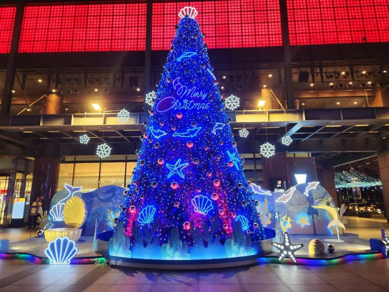 聖誕佳節將近,各大百貨公司和商場都換上新裝,2023年台中新光三越以「海洋星願.奇幻耶誕城」為耶誕主題,打造充滿海洋風情的藍色聖誕樹,營造出海底世界的感覺,美麗又吸睛。
